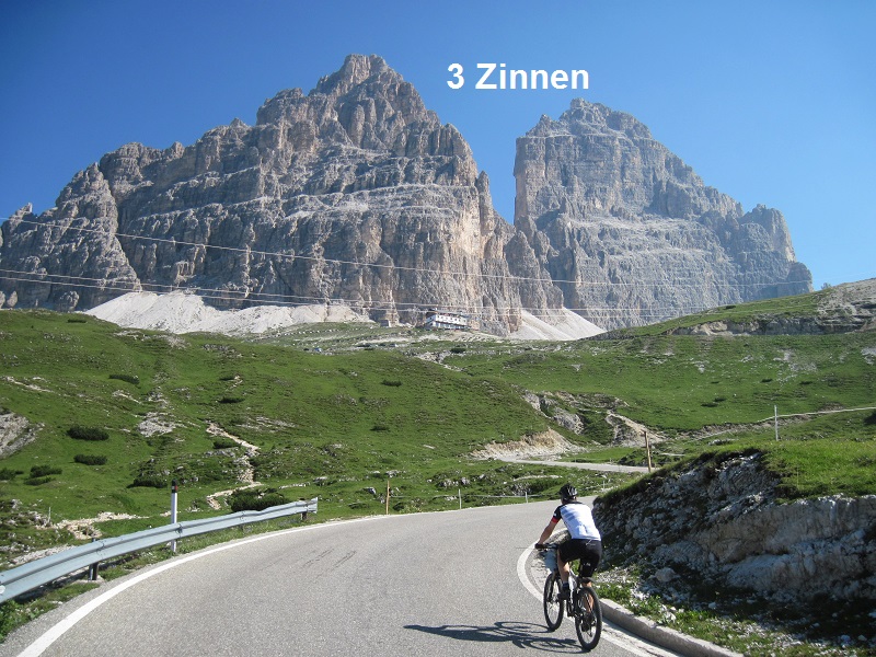 Heute war nur eine Rundtour geplant, also die Kür der Strecke. Es ging zu den 3 Zinnen in den Dolomiten hoch. Wir fuhren auf der Straße, leider. Oben angekommen, hatten wir schönste Aussichten. Für den richtigen Blick auf die 3 Zinnen mußten wir noch etwas schieben und fahren und diese umkreisen.